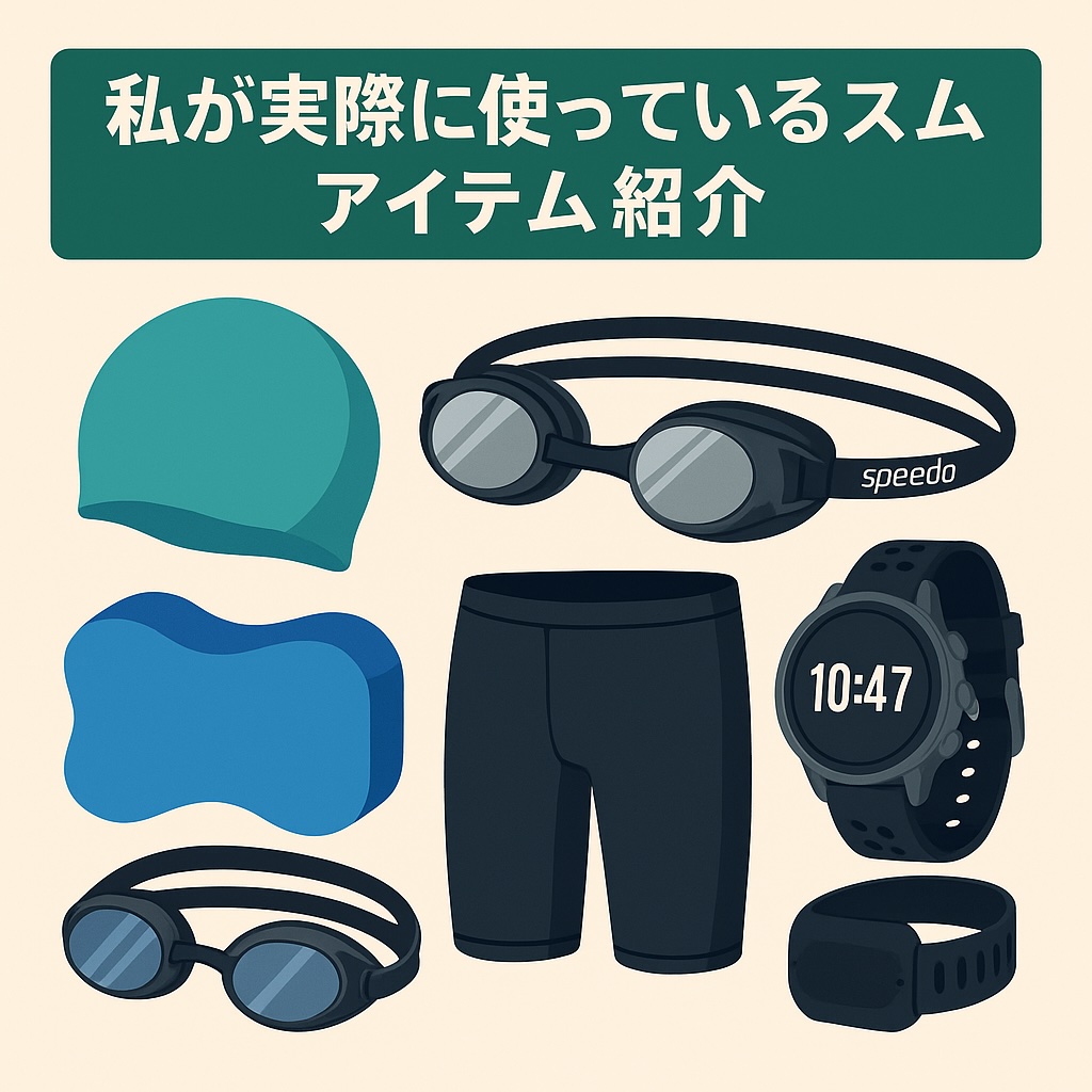 ここでは、私がトライアスロン練習やスイム練習で実際に使っているアイテムを紹介します。